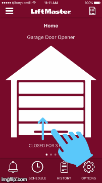 I would propose a swipe gesture to open the garage. That's the main reason I made the garage image larger. The second thing I did was add a "handle" to the bottom of the garage. Now, to open the garage, a user will swipe from the handle upward. Only when the garage door has been completely swiped up (or down) with the door be opened (or closed). The app could also use haptic feedback to let you know when the swipe has reached 100% (or 0%). See the GIF below for an example: